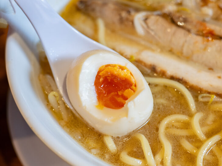 味玉は黄身の中心がトロッとした半熟タイプ。